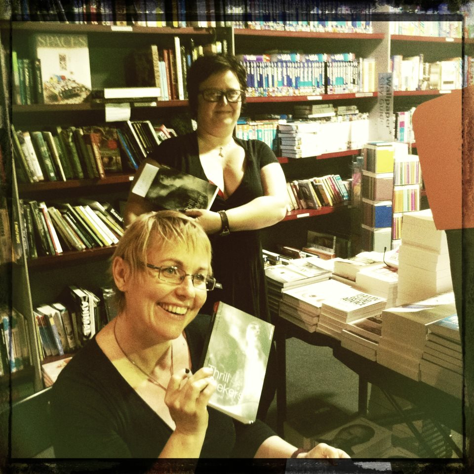 Edwina signing copies of Thrill Seekers at the launch