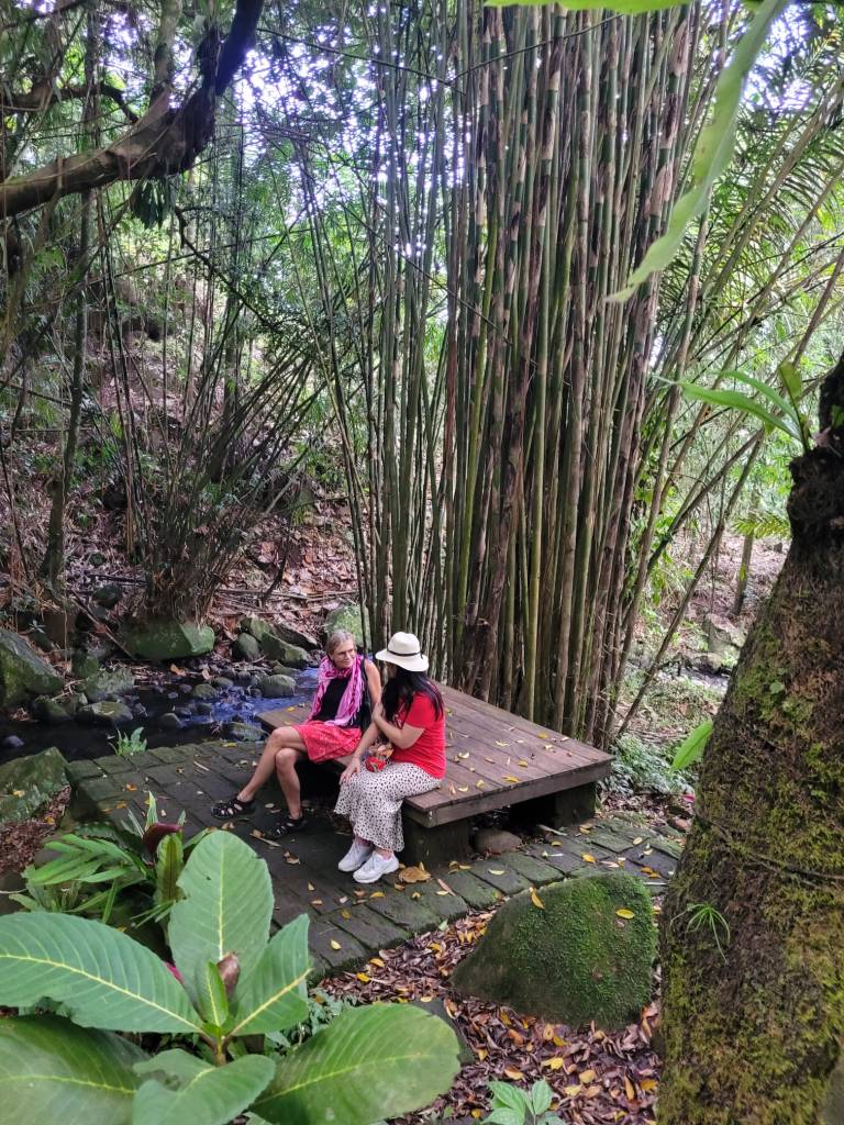 The magic of Bali and the kindness of the people worked their miracles again this year on retreat. With a small group due to some last-minute mishaps, (poor chookies, luckily we ask all participants to hold comprehensive travel insurance) we were able to spread out over the beautiful grounds of Bali Ecostay and enjoy the peace and privacy of our exclusive use of the unique open air bungalows, lulled by the ever-present music of the stream running through the property and powering our lights. With water drinkable straight from the taps, sourced from Bali Ecostay’s own spring, and all organic bath products as well as delicious food prepared with love and sourced from their own incredible permaculture gardens and food forest, we were able to totally relax into the Bali of days gone by.