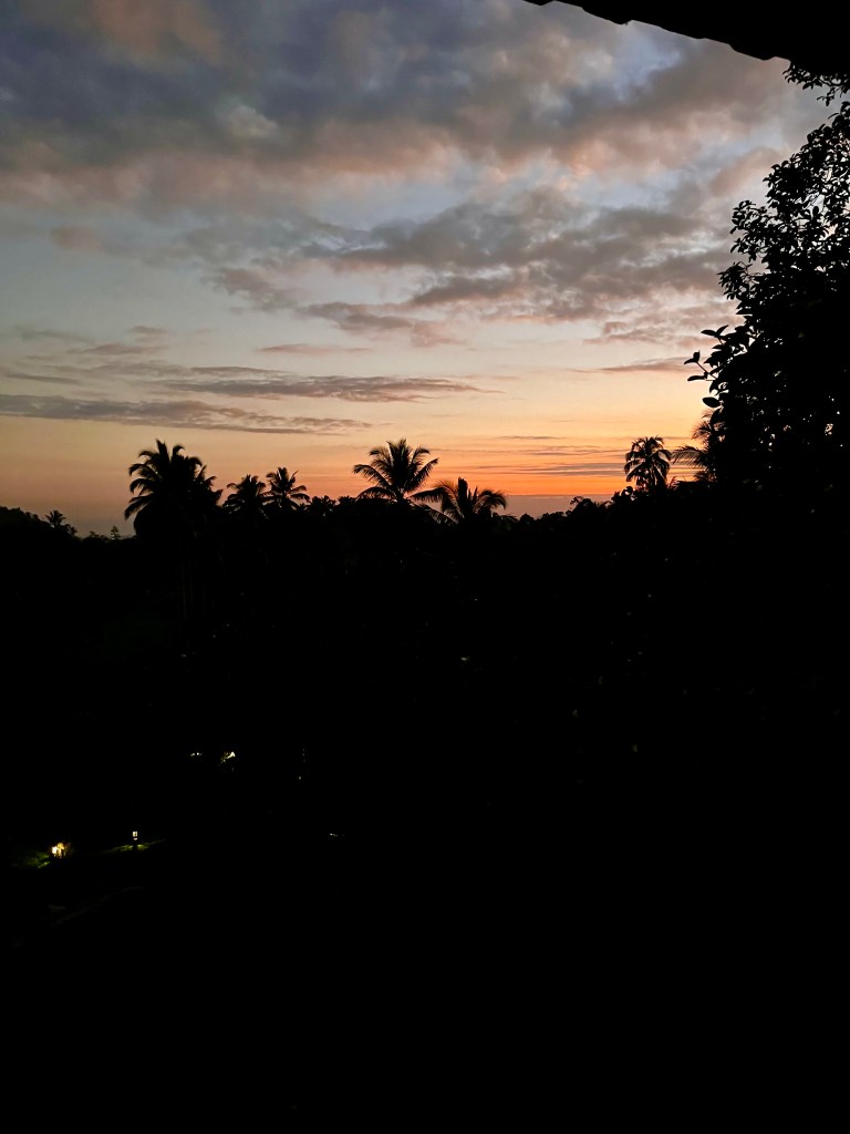 As the sun set each day, we gathered again in the yoga shala for some calming yoga breathing (pranayama) to clear our minds, relax deeply and prepare for a restful night. Cocktails and glasses of wine were ordered as our lovely kitchen ladies brought out our dinners, each one delicious and followed by scrumptious desserts. Everyone had their favourite. I love the black sticky rice pudding with hot coconut cream. Kerstin craved the lime dairy free cheesecake, or was it the dairy free chocolate gelato or chocolate pie? Let’s just say we feasted happily without having to lift a finger!