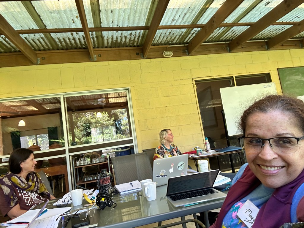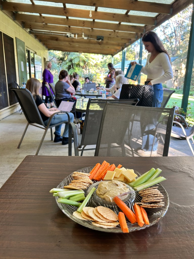Relaxing is just as important as writing, which is why gentle morning movement and deep guided relaxations are a part of every retreat. As is nap time! All activities are optional so you can design your own retreat and either attend everything on offer for an intensive learning experience, or sleep in and attend just a couple of workshops to get some ideas, then enjoy a massage, or grab a cup of tea and some of Gay’s delicious treats, head out with a picnic rug and find a place to lie in the sun and journal, read or just lie down and rest. Other writers came along to finish works in progress. Go Georgina go! Happy to report that her first draft is now complete!