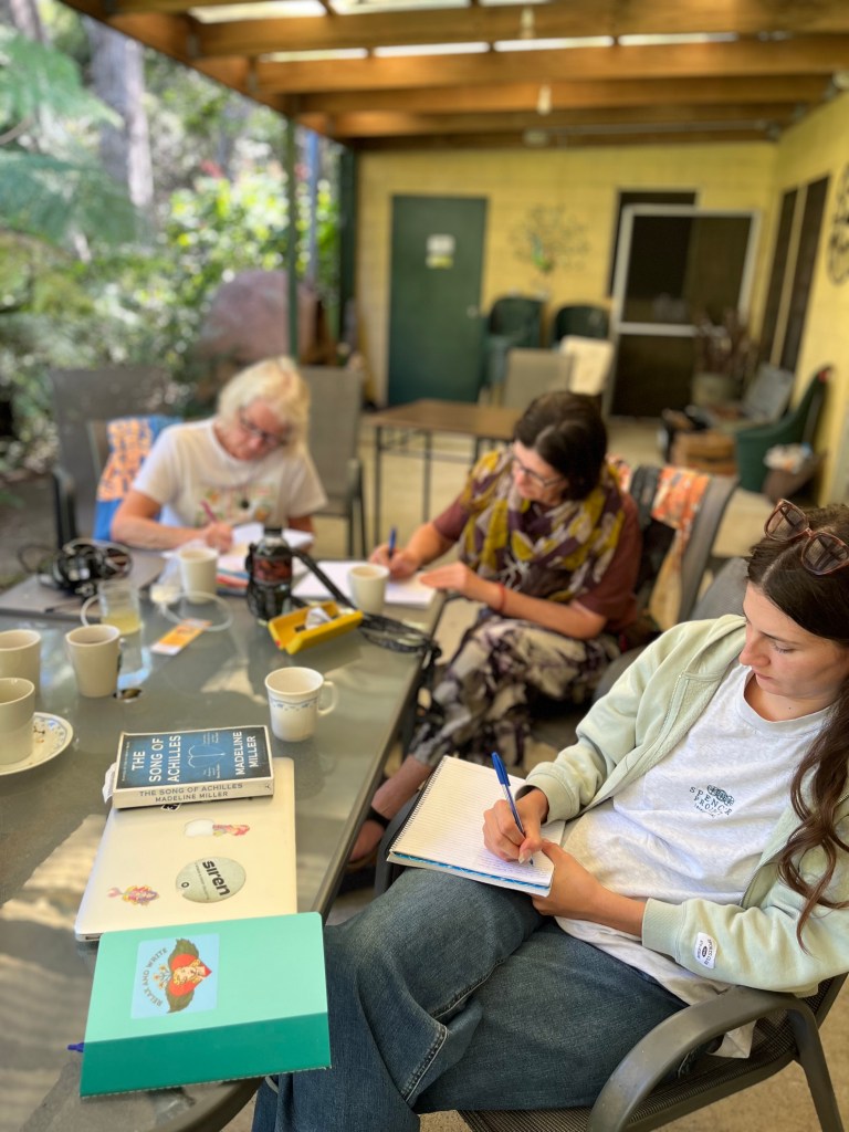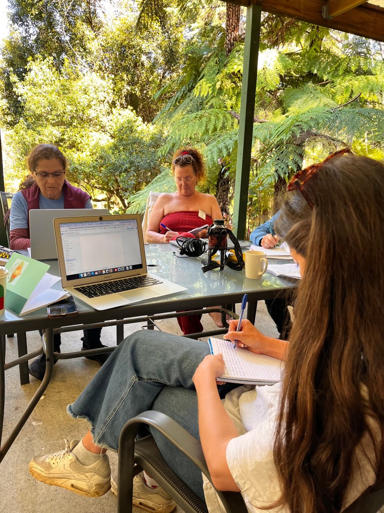 A glorious weekend of sunshine for our Relax and Write Memoir Writing Retreat this year. Blue skies, towering gums, birdsong and leaves rustling and the feeling of being the only ones left on earth. Peace to write and learn, and best of all, connect with other writers.