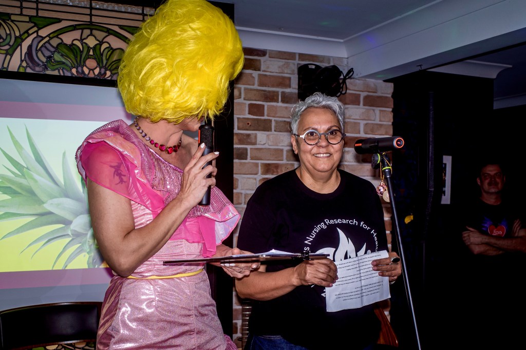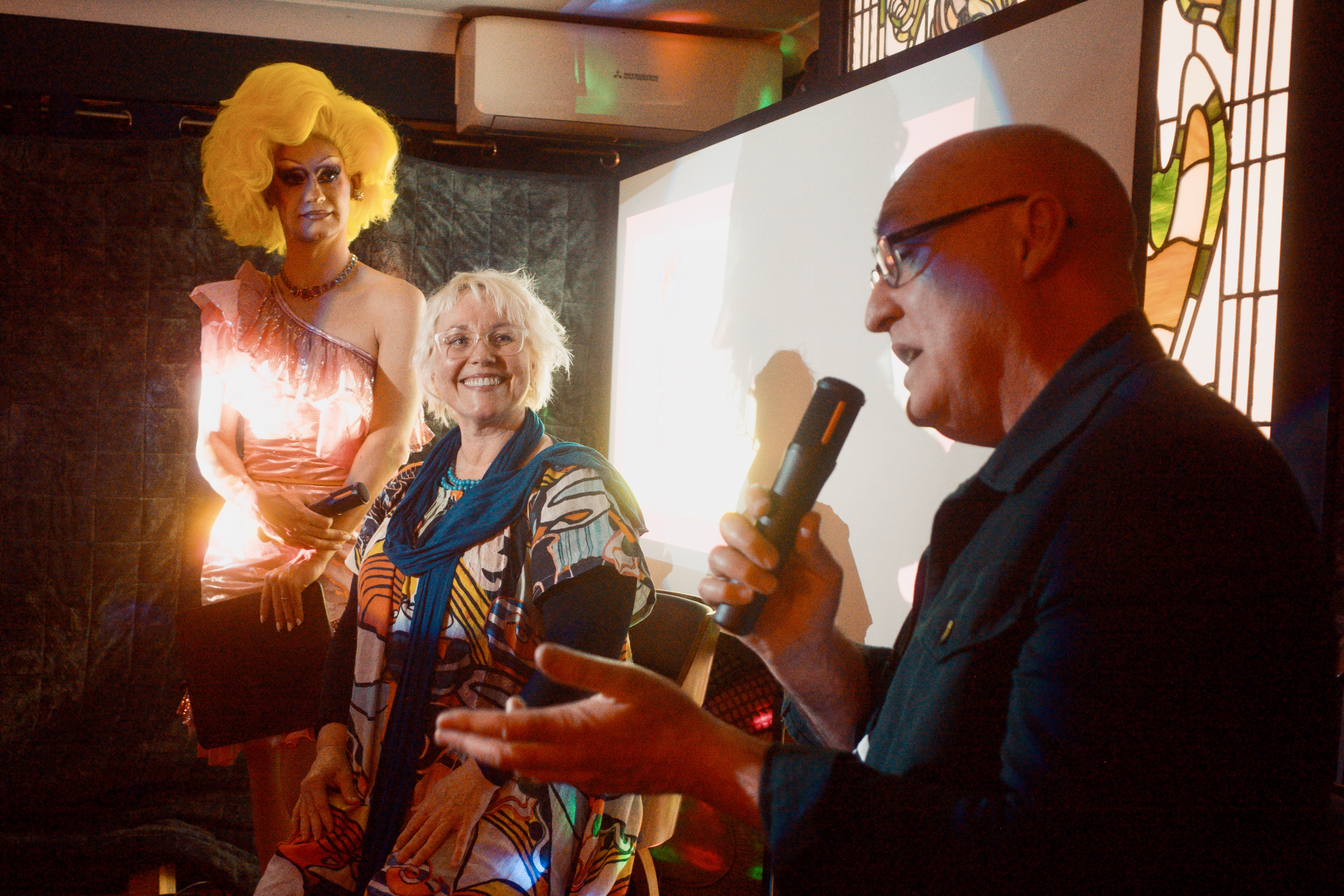 Our hostess with the mostest at the Queersland launch, drag performer, Evalyn Eatdith