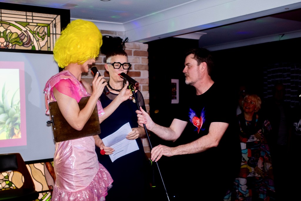 2. Find someone to launch your book. The person who hosts your event should be able to help bring in a crowd and be experienced in hosting events like this, lively, engaging and intelligent. Ask your most famous writing friend or alternatively someone who is knowledgeable about your book’s topic or theme. I hosted Gay’s launch, and we also invited her ex-commanding officer from her time in the army to do the official launching. For Queersland our hostess was the fabulous Evalyn Eatdith, drag artist – the perfect host for a queer event.