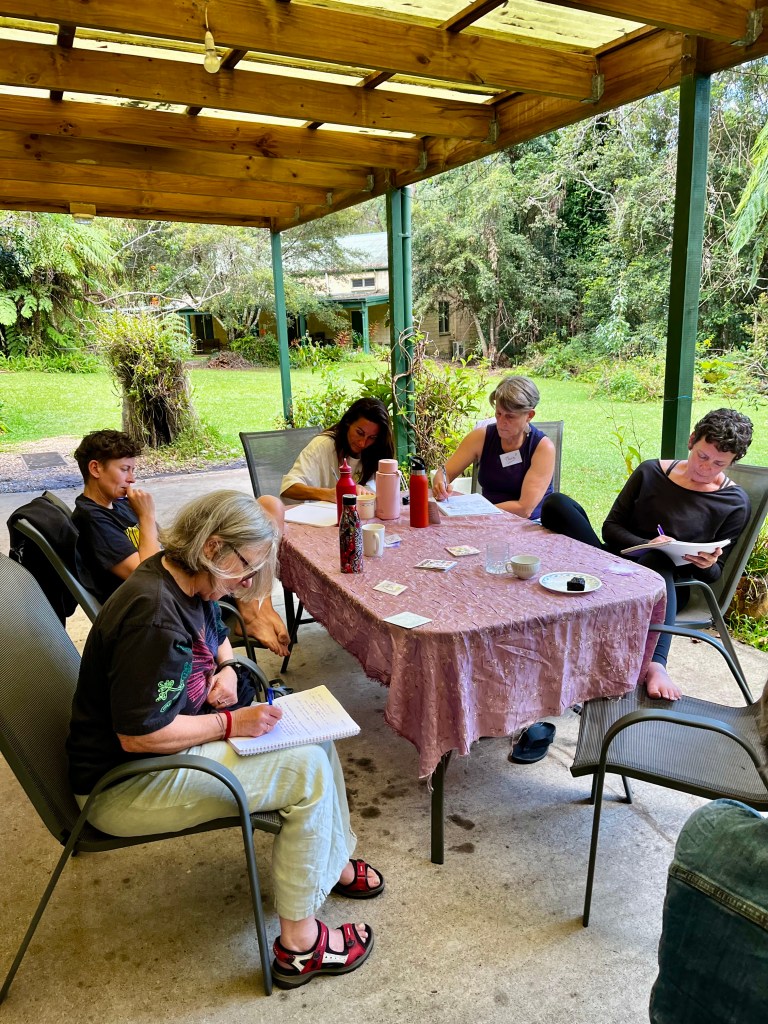 With writers from their twenties to their seventies we had a wealth of enthusiasm, energy, imagination and wisdom to draw from. I’ve said it before and I’ll say it again – these retreats are only as good as the people who come along, and this bunch was special. From a memoir about traveling to spiritual portals around the world, to sexual healing, to a film treatment about coming out as non-binary, to stories of grandmothers and fathers, and the damage that was done and the victories won and the paths less travelled. We had it all.