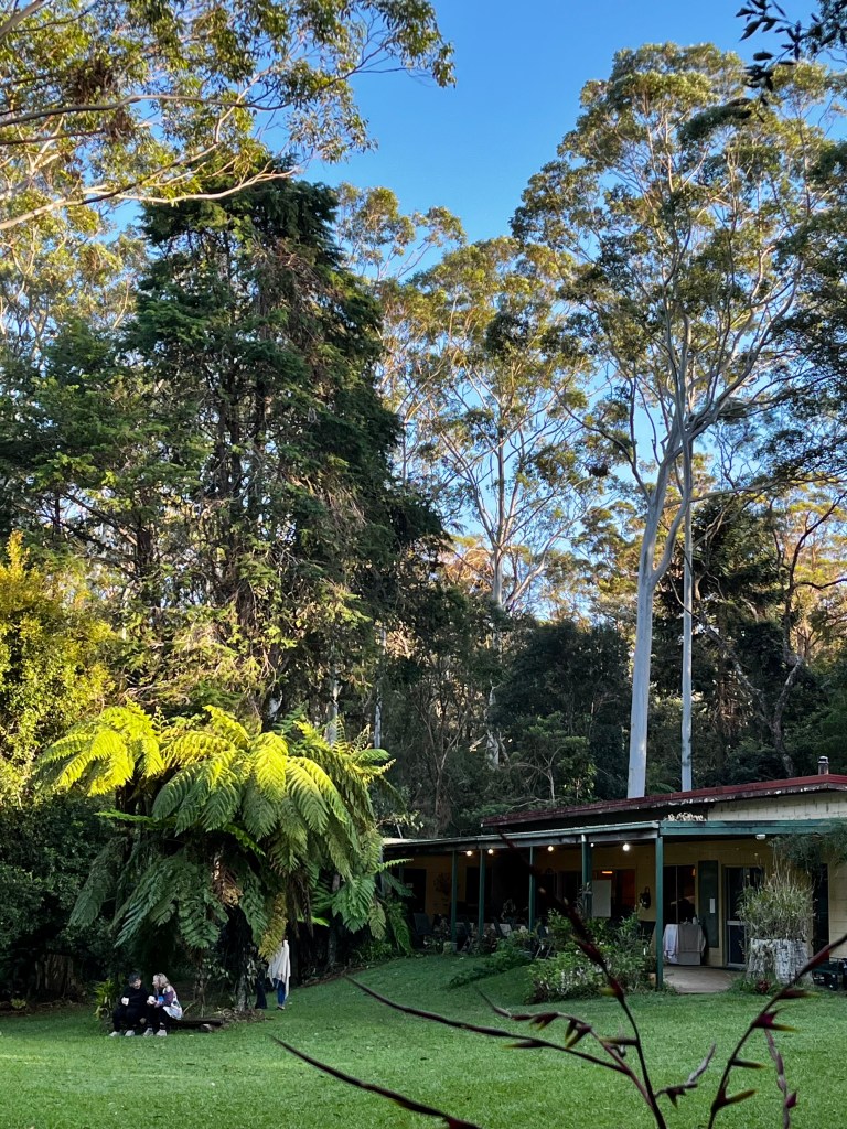 Retreaters took walks down to the spring-water stream and our very own waterfall lookout, sat in the sun and read, or found places to write or stare into space and think, or watch the resident pademelons – now named – Paddy, Melon and Little Toot (that’s the pouch joey) bounce happily around despite us.