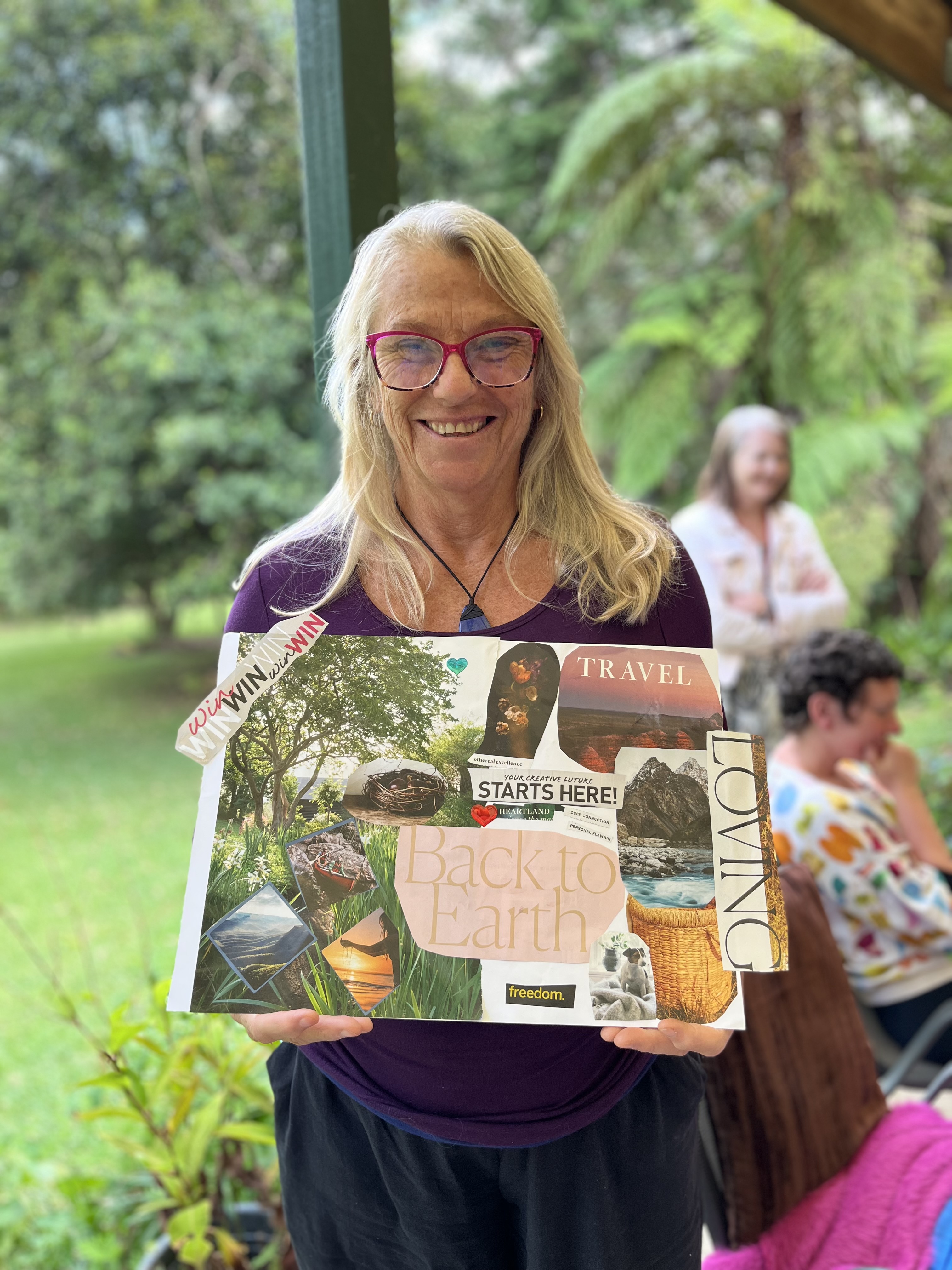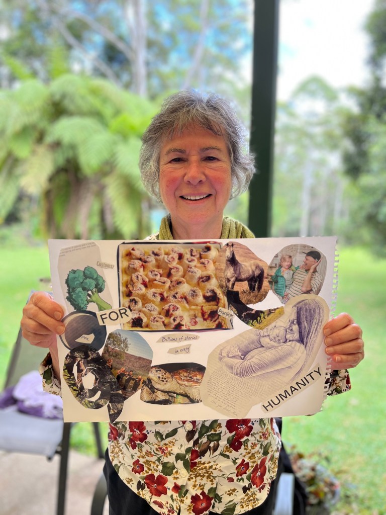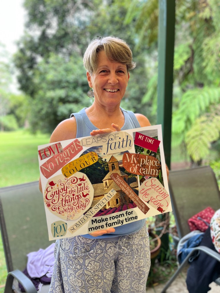 The weekend flew by until suddenly it was collage time and dreams took shape in images on the page. Hugs all round and it was time to go. But I hope I’ll see this bunch again. In such a short time we became our own mob of magic makers, writing our stories, rewriting our lives, reaching for our dreams. I miss them already.