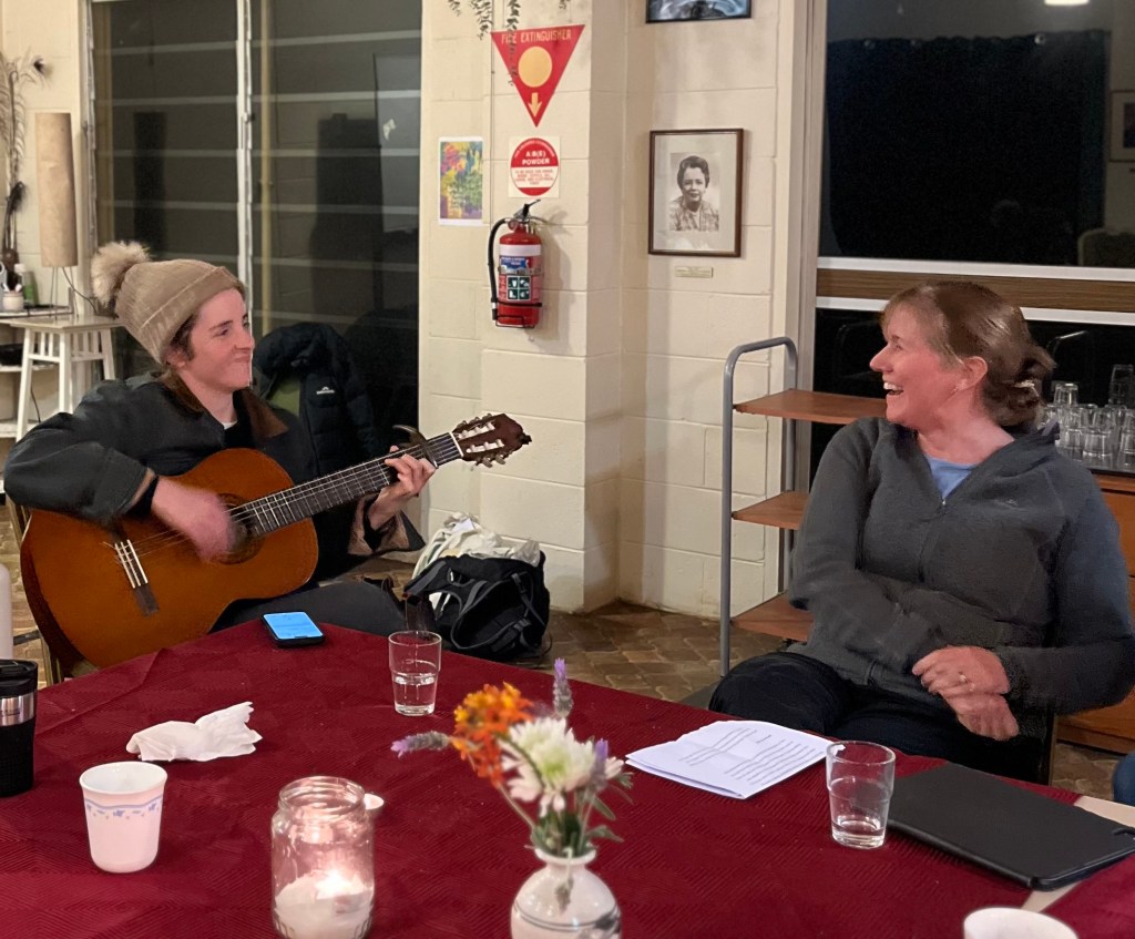 Then, after the generator was started, came the real fun of readings nights with so many powerful stories shared, a play reading acted out and best of all a singalong, led by our youngest retreater, Eloise ,who’d brought along her guitar and cheeky grin. The fire and the songs kept us warm, and I was filled with happiness as I looked around at the group all singing and smiling. Ah. A very special retreat moment. Luckily the power was restored just in time for our electric blankets to make our beds cosy as we fell asleep in the silence of the forest.