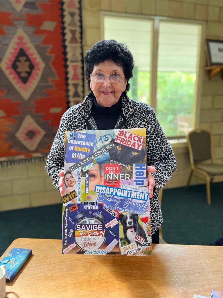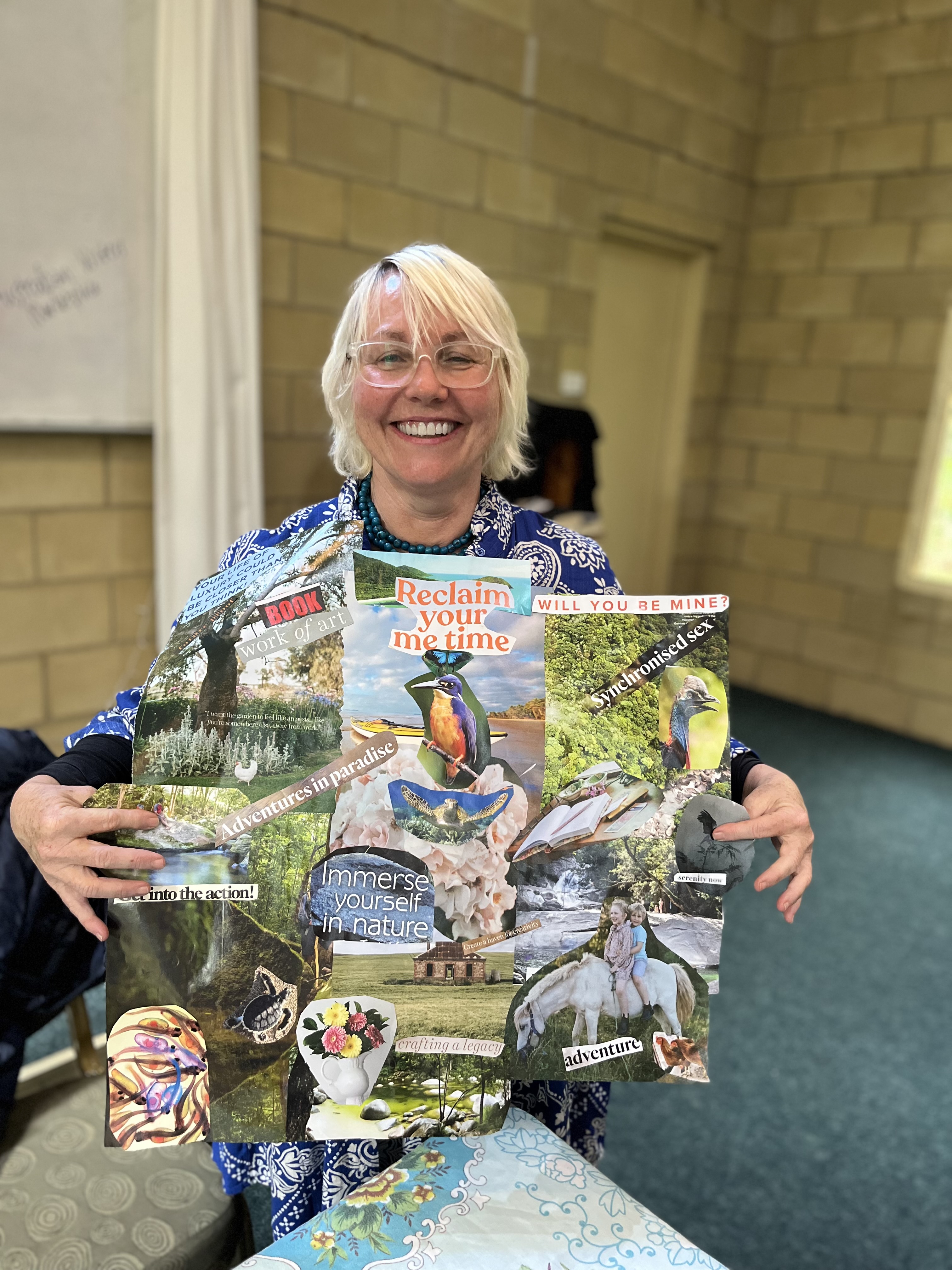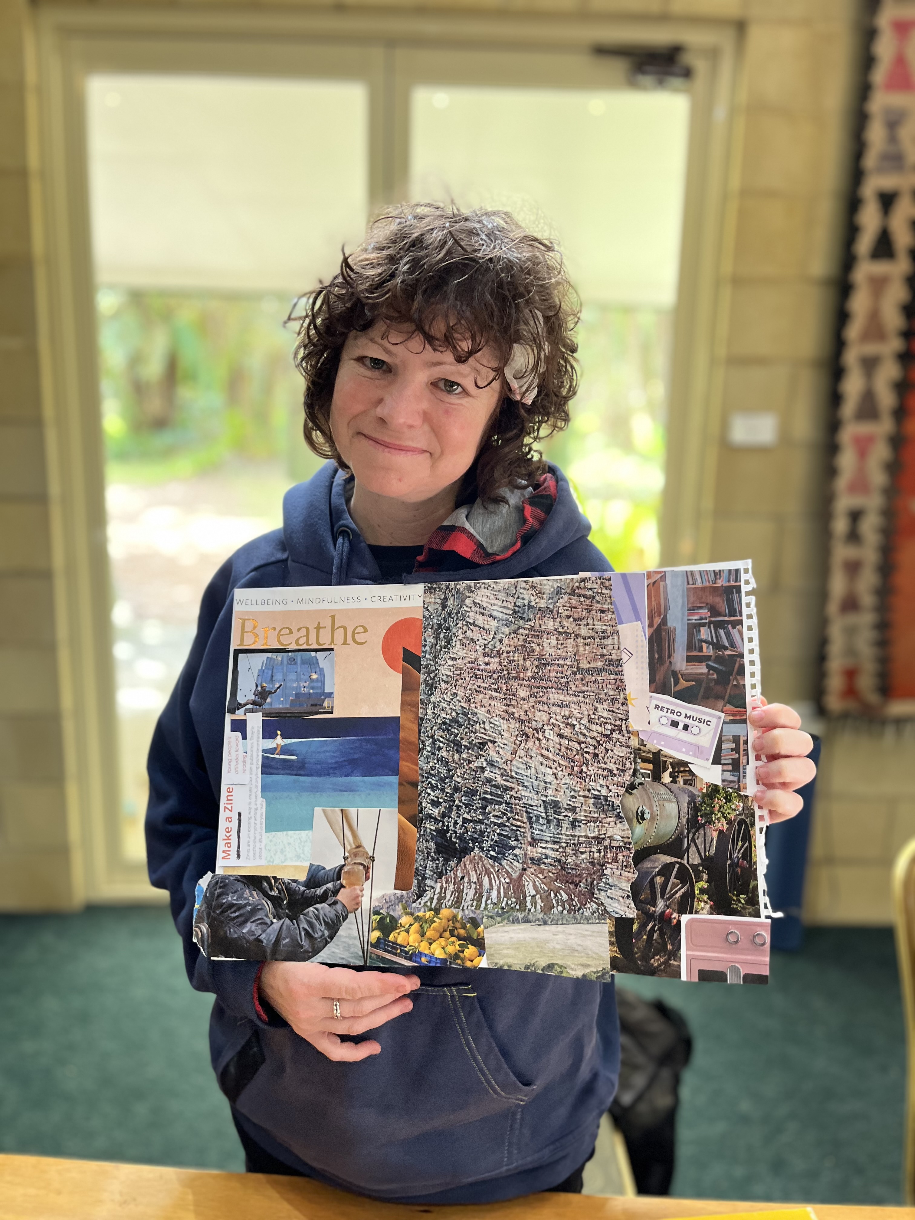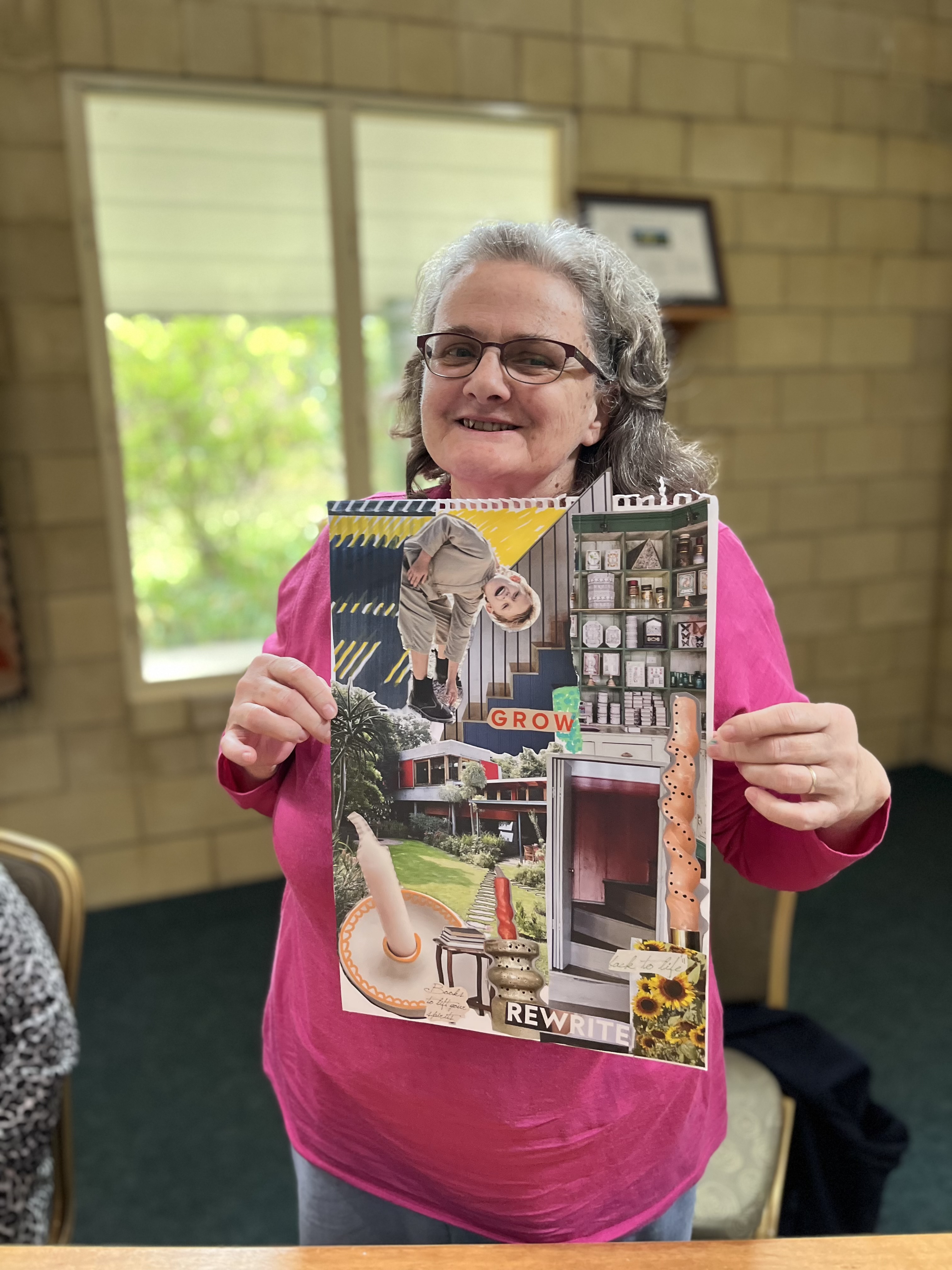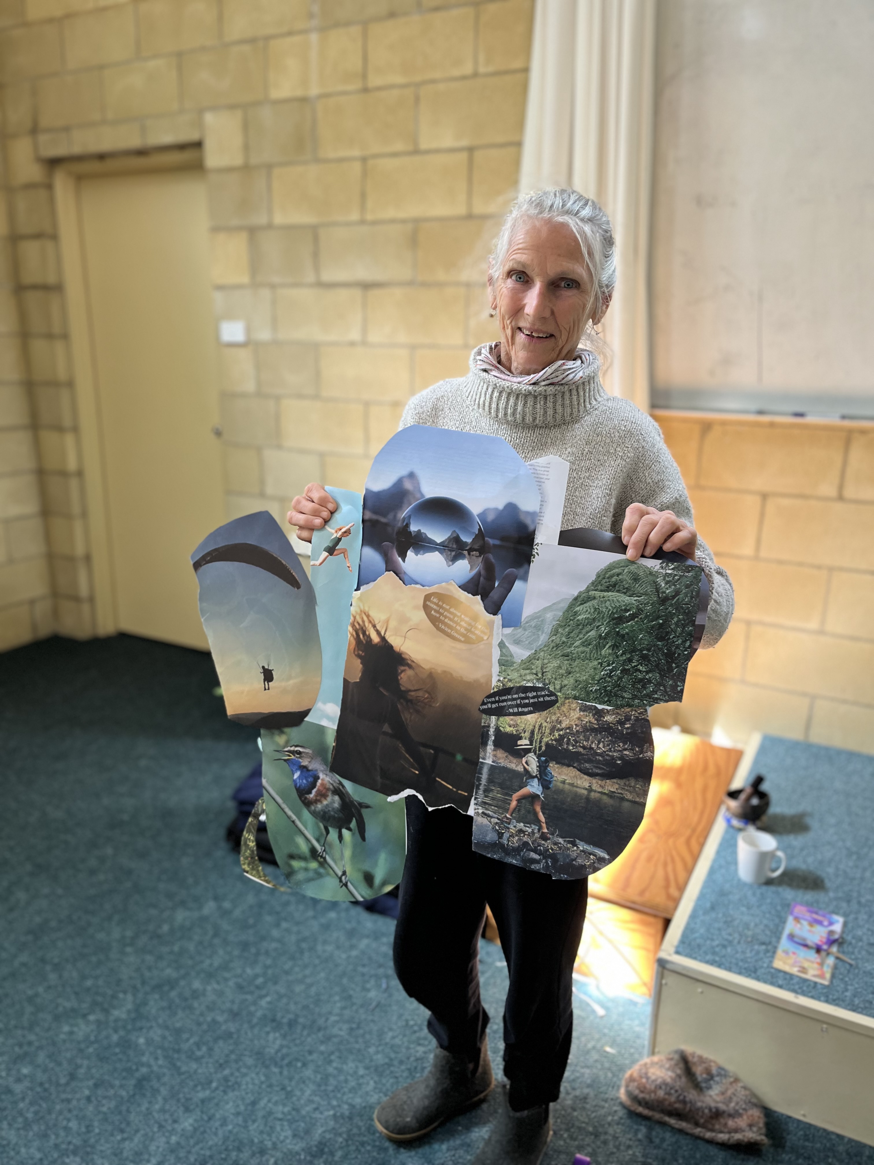 On Sunday after a special movement session by Monique and our publishing pathways workshop, we finished with our traditional collages. Here’s our kindy photos holding up our finished pieces.